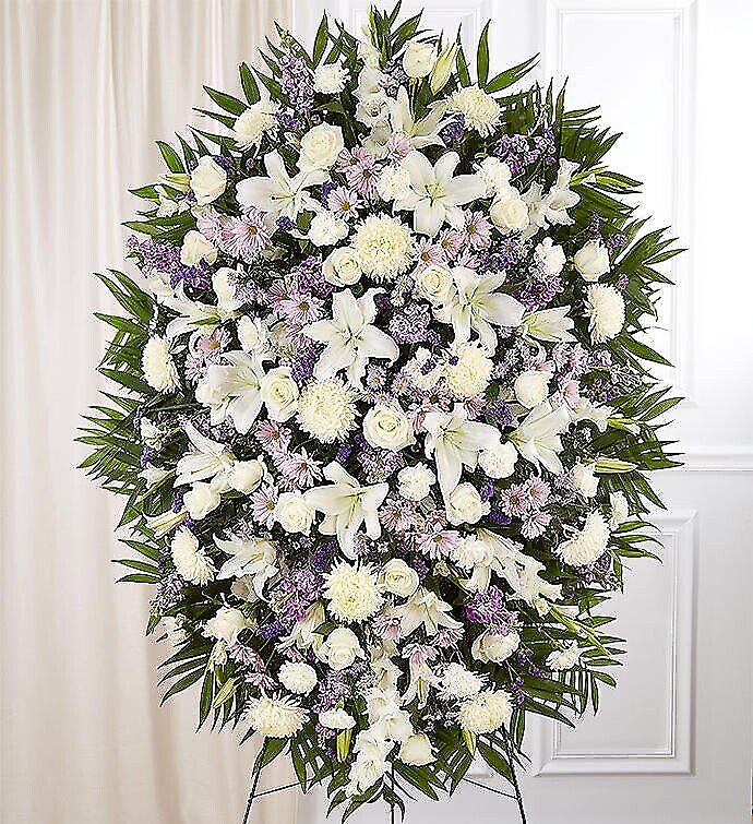 A standing spray is a large floral design displayed on an easel. It is designed to be seen from a distance. These are often the most impressive funeral and sympathy flowers at a service. They can be shaped like crosses, hearts, or even simple rounds. They act as a silent guard of honor next to the casket.